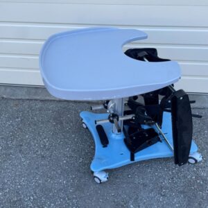 The Meerkat is a simple upright standing frame with adjustable support for feet, knees, pelvis and chest. This Meerkat stander has a detachable rocker base. It provides hip, chest and knee support
