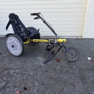 Trike comes equipped with pedals with toe clips and straps for better grip
